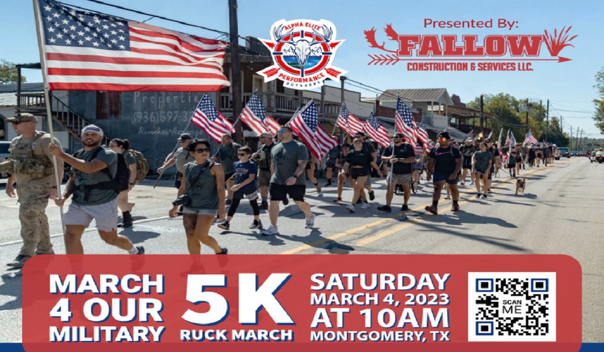 They organized a 5k ruck march event for March 4th in Montgomery, Texas to raise money for the nonprofit to pay for more veteran trips.