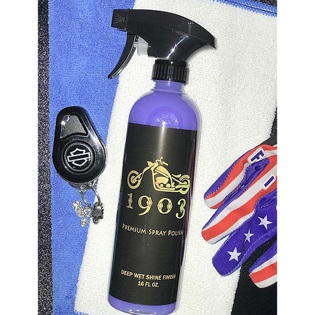 1903 is a pure carnauba wax that produces the deepest glossiest shine on any type of paint finish. It is easy to apply and easy to buff off, and it gives your motorcycle or car an incredible wet-look shine. After just one application, you will see for yourself that 1903 Spray on Polish is the finest carnauba spray polish/wax in the world. 1903 Spray on Polish is distributed exclusively in North America by 1903 Spray on Polish, and we are seeking national and international distributors.