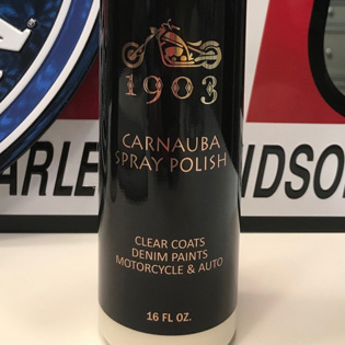 1903 Spray on Polish is a pure carnauba spray wax that is easy to apply and easy to remove. Other Liquid waxes on the market simply do not measure up to 1903 Spray on Polish. They do not provide the deep shine that turns a good paint job into a brilliant paint job. Unlike most waxes available today, 1903 Spray on Polish contains no cleaners, powders, abrasives, or PTFE sealants. This is crucial to protecting the finish on your motorcycle or car because products containing cleaners, powders, or abrasives remove some of your vehicle's finish every time you wax.