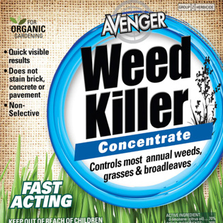 University and independent testing results prove that Avenger® is as effective, but faster acting compared to the leading synthetic herbicides, even those containing glysophate. When tested against herbicides made from vinegar (acetic acid), citric acid or essential oils or glysophate, Avenger® is more effective with quicker results. It is an economical alternative to hand weeding, flaming, mowing, cultivation and other natural herbicides and is approved for use in organic gardening and organic production.