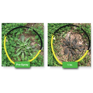 This patented, non-selective herbicide kills a broad spectrum of weeds and unwanted grasses naturally and quickly. The active ingredient is d-limonene (citrus oil). D-limonene naturally strips away the waxy plant cuticle, causing it to desiccate and die.