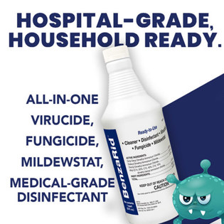 BenzaRid is an EPA-registered, ready-to-use hospital-grade non-staining, colorless, light lemon-scented disinfectant, virucide, fungicide, and mildew stat for your environment. It may be used on non-porous surfaces like beds, couches, chairs, floors, etc. Prevents the re-infection of your home and work environment. Child and pet safe once dry.