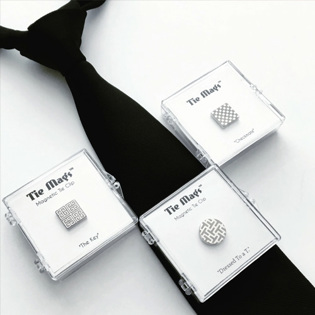Flimsy tie clips and sharp tie pins have plagued neckties since their inception. A flimsy tie clip will look crooked on a tie and provide an incomplete style look. Tie pins puncture a permanent hole in the tie, damaging it and forcing you to wear a pin with that select tie. Tie Mags takes a different approach. Using the strongest magnets found on earth, Tie Mags hold your necktie firmly in place with style. One back-piece magnet is hidden behind your shirt slit, and one Tie Mag is on the front of your tie. The two magnets create a strong bond that holds your tie in place for a completely dapper look.